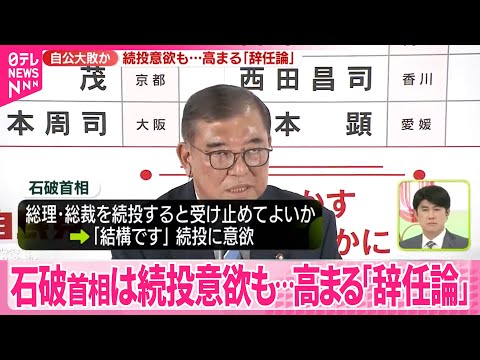 綜合日本放送協會(NHK)、《讀賣新聞》等日媒報導,石破茂將於今日上午在自民黨臨時幹部會議表達繼續留任的意願,隨後與公明黨黨魁齋藤鐵夫會談,確認兩黨繼續共同執政的意願。他將於下午以自民黨總裁(黨魁)身分舉行記者會,正式宣布將繼續留任。